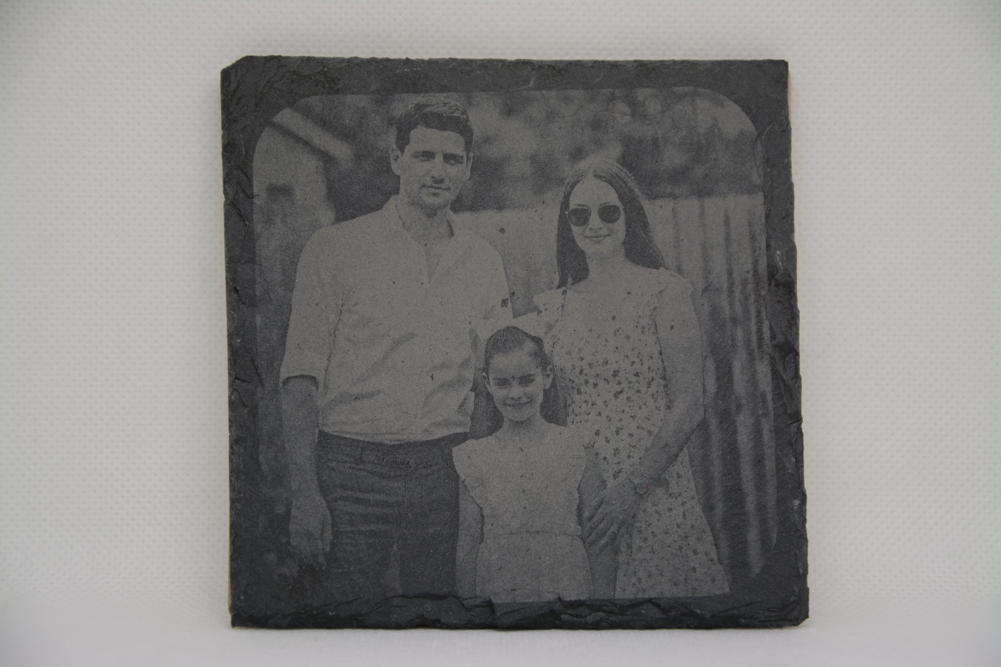 Bei LaserLuzern gravieren wir elegante Untersetzer aus natürlichem Schiefer. Die dunkle Steinoberfläche bietet einen starken, hellen Kontrast für saubere und dauerhafte Lasergravuren.